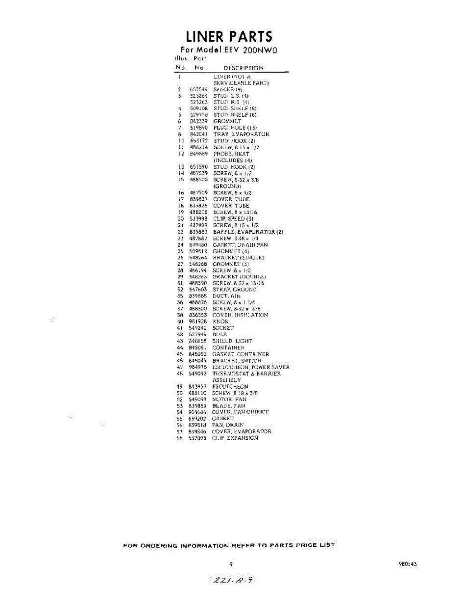 Parts for Whirlpool EEV200NW0: 09 - Section Parts
