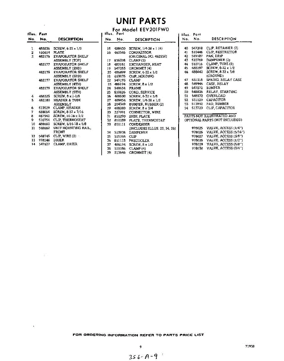 Parts for Whirlpool EEV201FW0: 09 - Section Parts