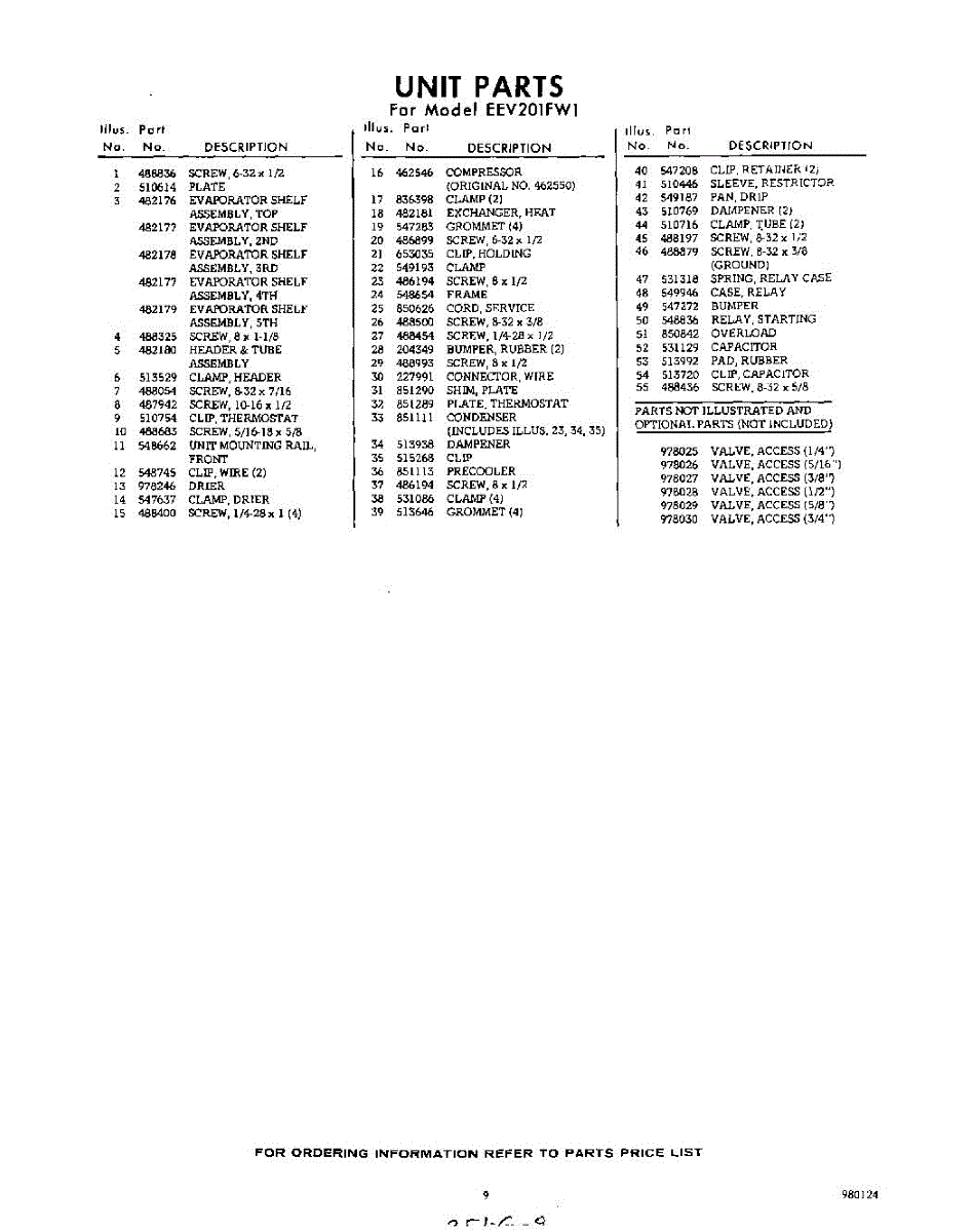 Parts for Whirlpool EEV201FW1: 09 - Section Parts
