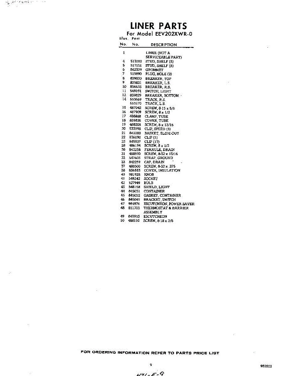 Parts for Whirlpool EEV202XYR0: 09 - Section Parts