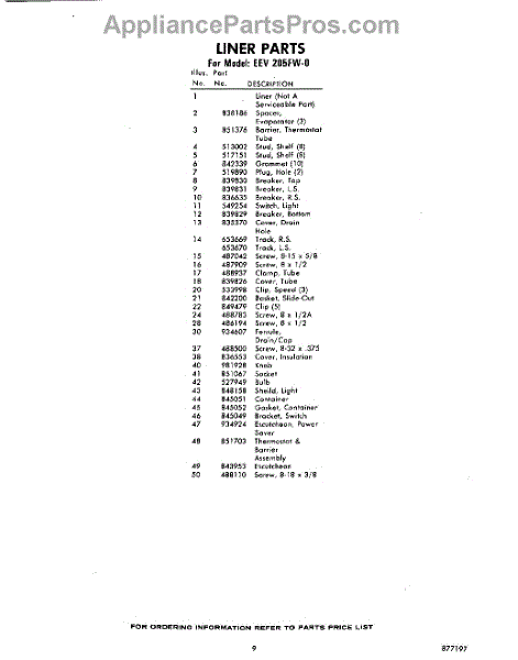 Parts for Whirlpool EEV205FW0: 09 - Section Parts