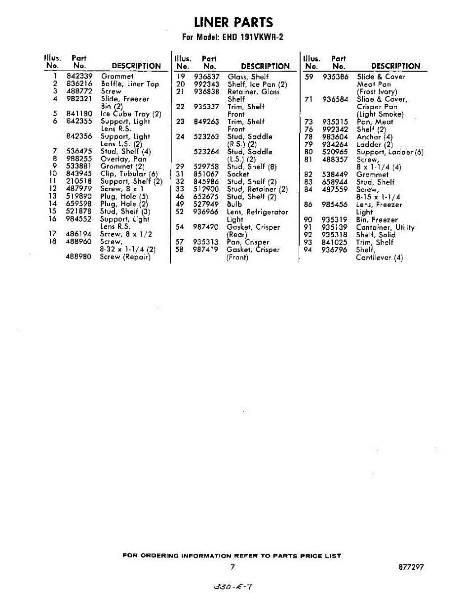 Parts for EHD191VKWR2