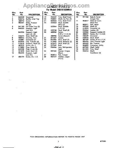 Parts for Whirlpool EHD191XKWR0: 07 - Section Parts