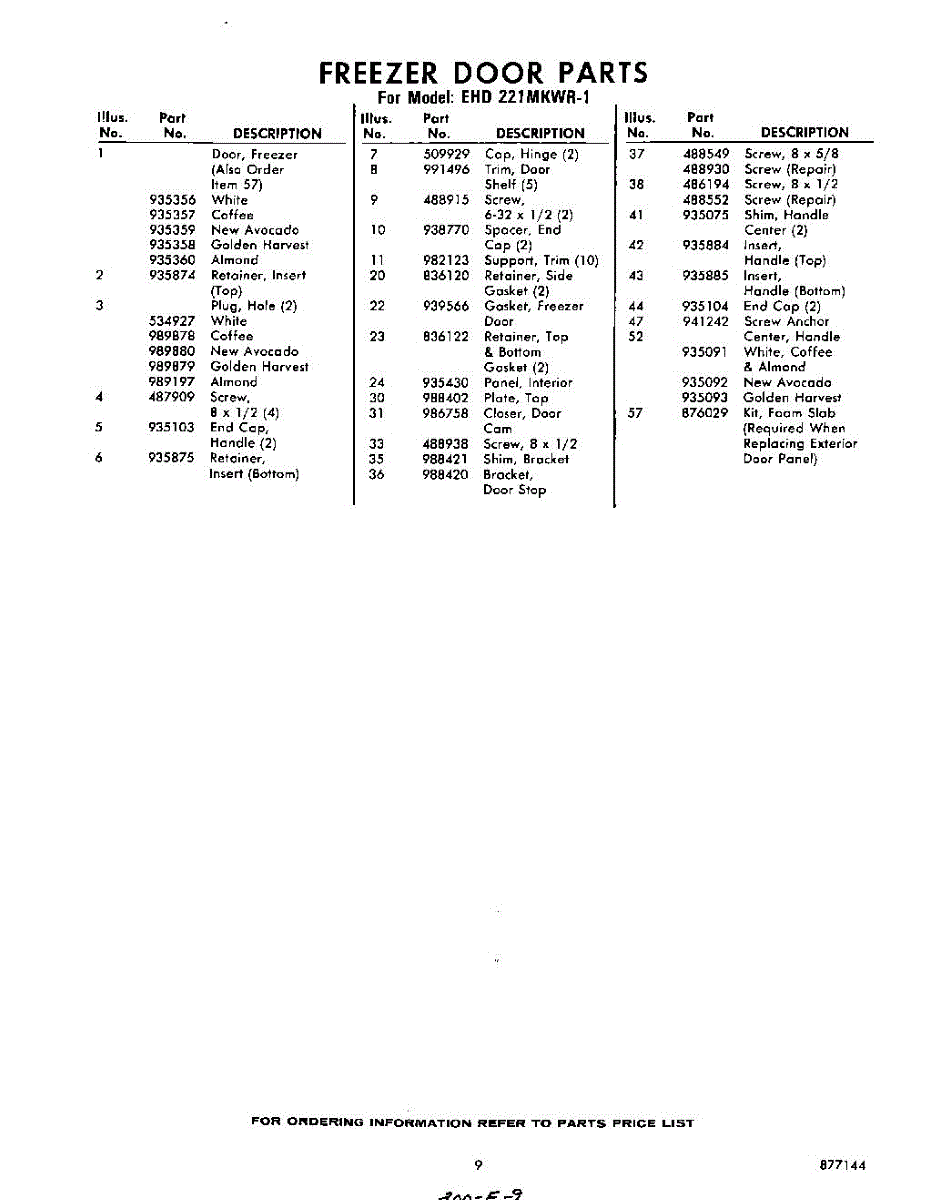Parts for Whirlpool EHD221MKWR1: 09 - Section Parts