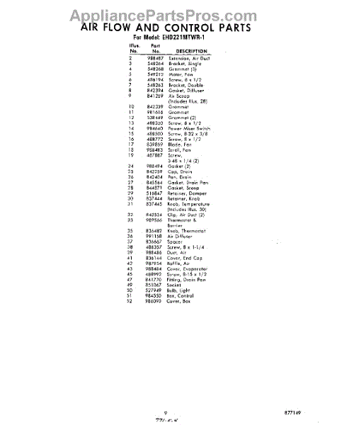 Parts for Whirlpool EHD221MTWR1: 09 - Section Parts