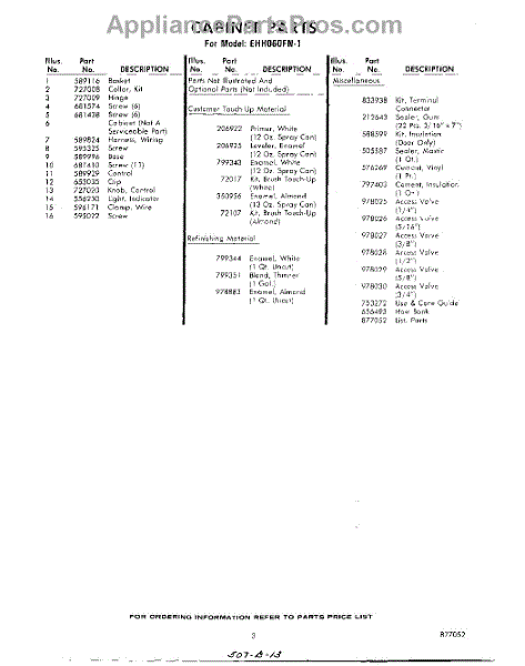 Parts for Whirlpool EHH060FN1: 03 - Section Parts