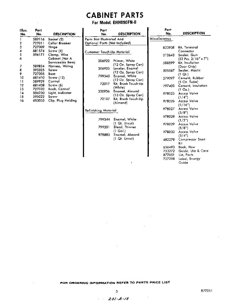 Parts for Whirlpool EHH090FN0: 03 - Section Parts