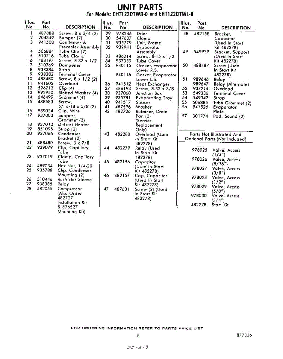 Parts for Whirlpool EHT122DTWR0: 09 - Section Parts