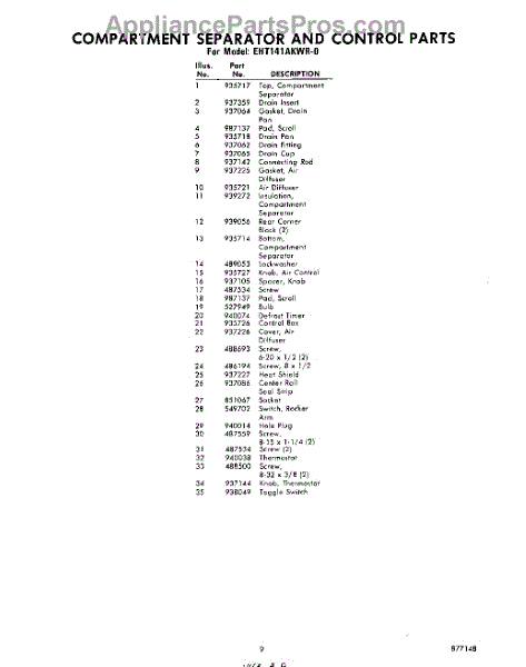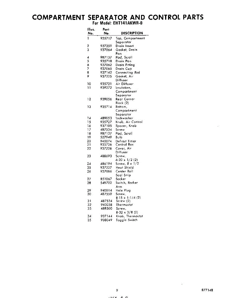 Parts for Whirlpool EHT141AKWR0: 09 - Section Parts