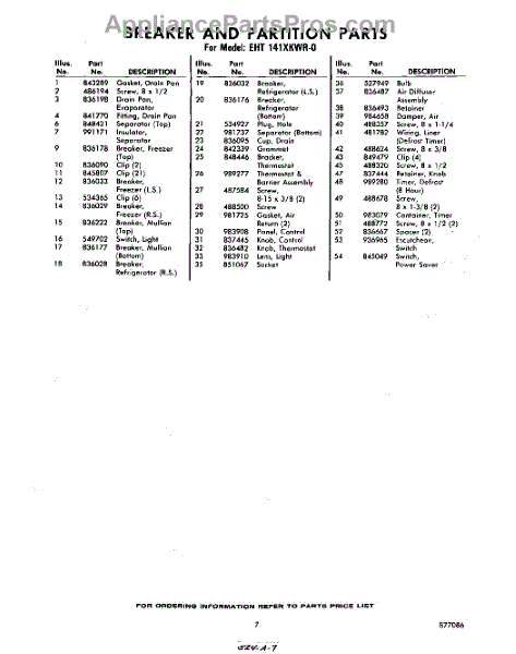 Parts for Whirlpool EHT141XKWR0: 07 - Section Parts