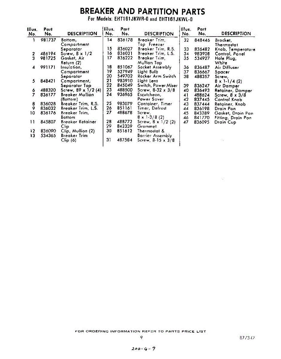 Parts for Whirlpool EHT161JKWL0: 09 - Section Parts