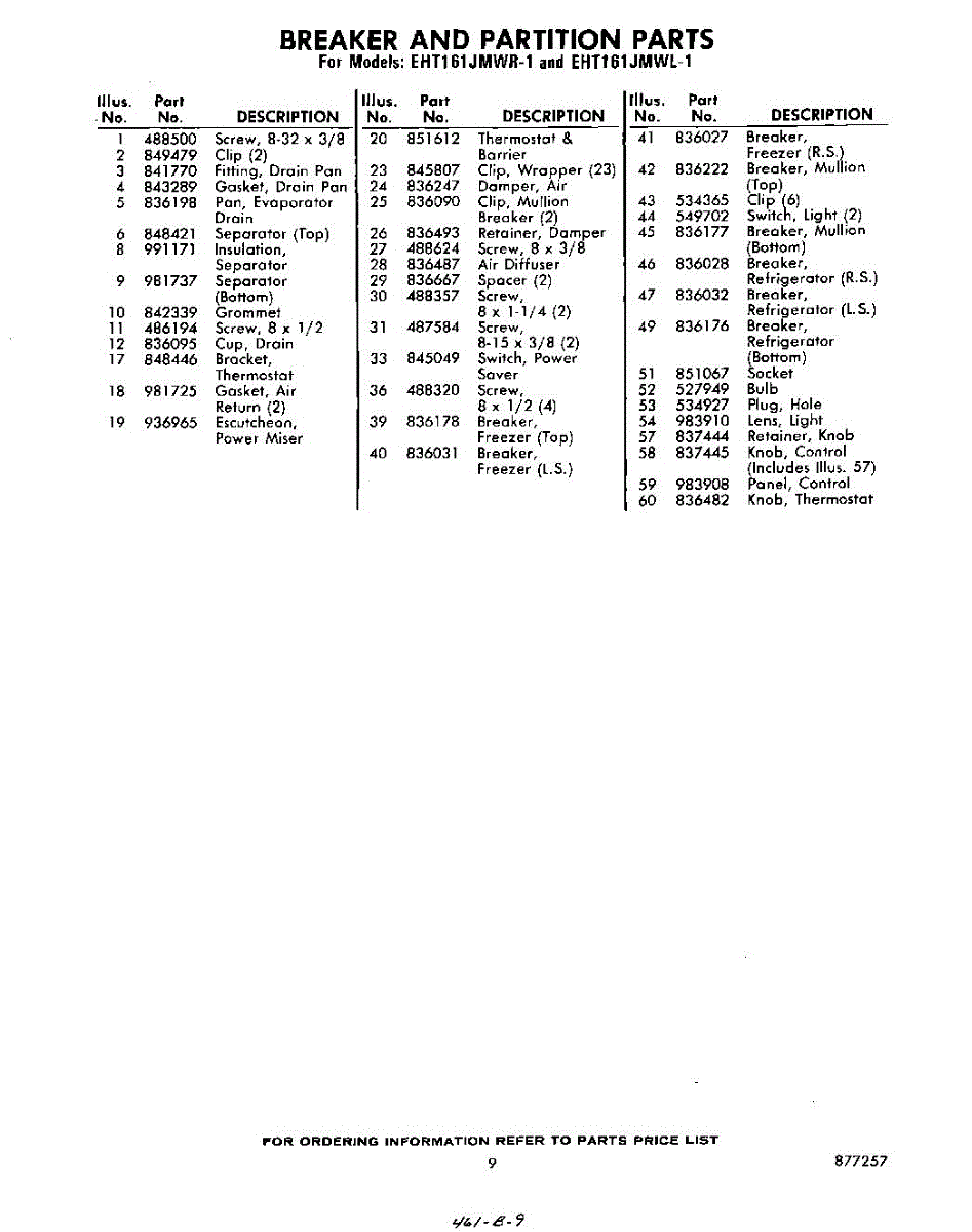 Parts for Whirlpool EHT161JMWR1: 09 - Section Parts