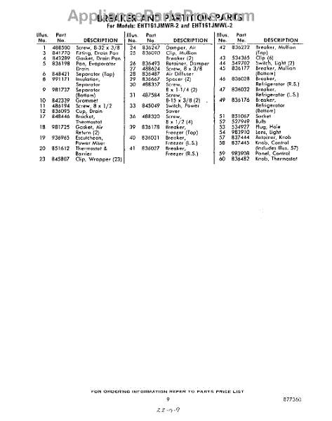 Parts for Whirlpool EHT161JMWR2: 09 - Section Parts