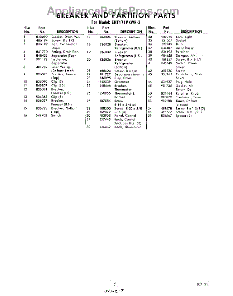 Parts for Whirlpool EHT171PKWR3: 07 - Section Parts