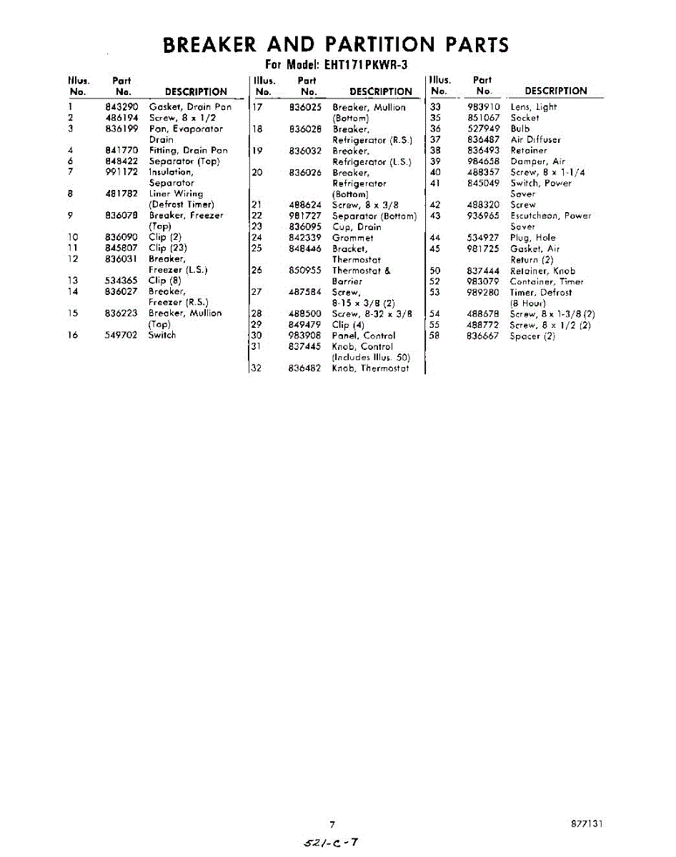 Parts for EHT171PKWR3