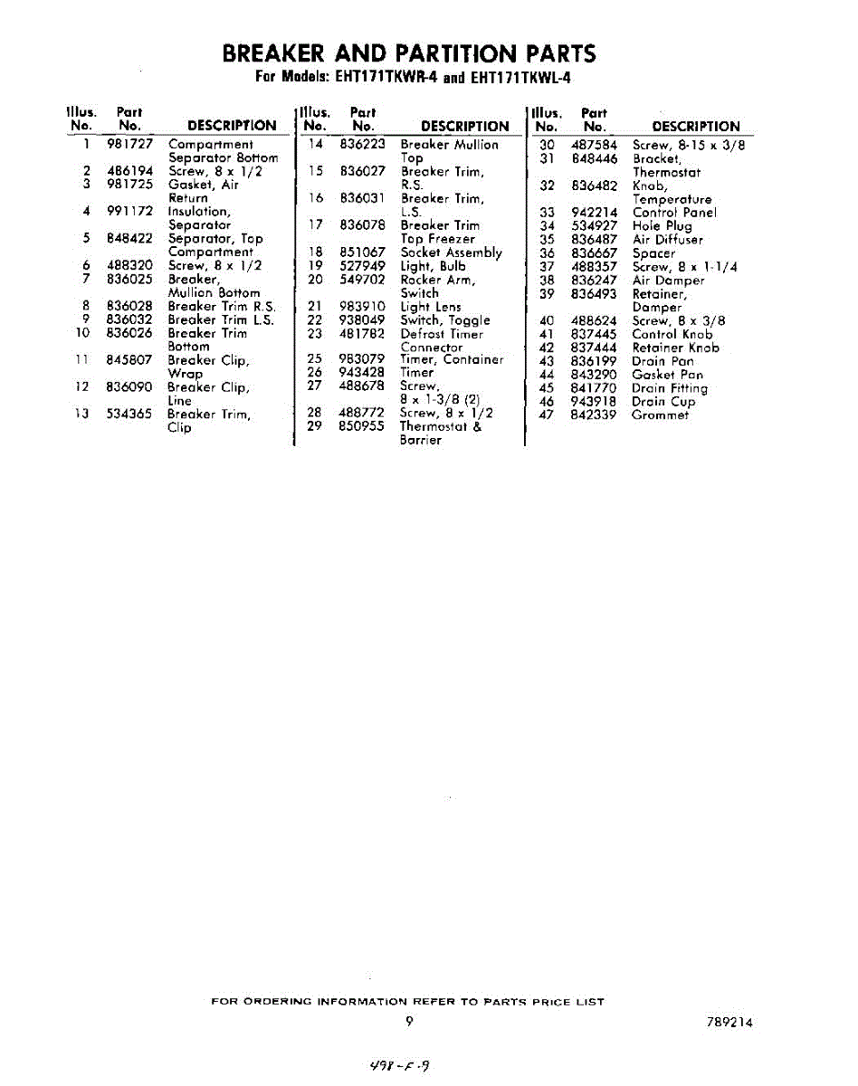 Parts for Whirlpool EHT171TKWR4: 09 - Section Parts