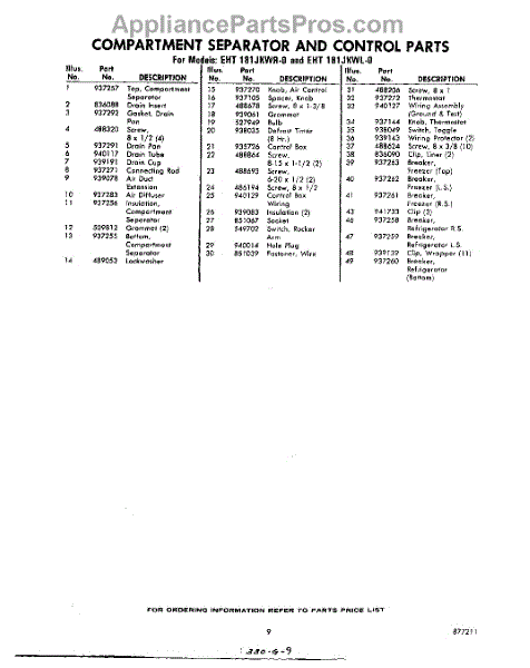 Parts for Whirlpool EHT181JKWR0: 09 - Section Parts