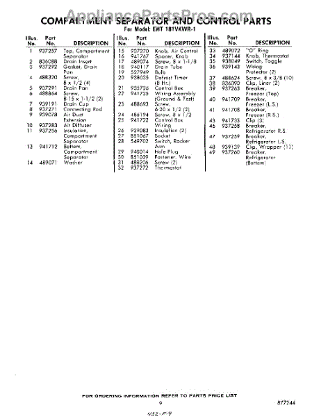 Parts for Whirlpool EHT181VKWR1: 09 - Section Parts