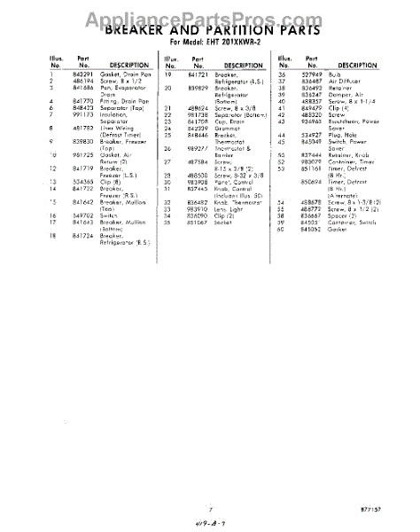 Parts for Whirlpool EHT201XKWR2: 07 - Section Parts
