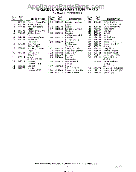 Parts for EHT201XKWR6