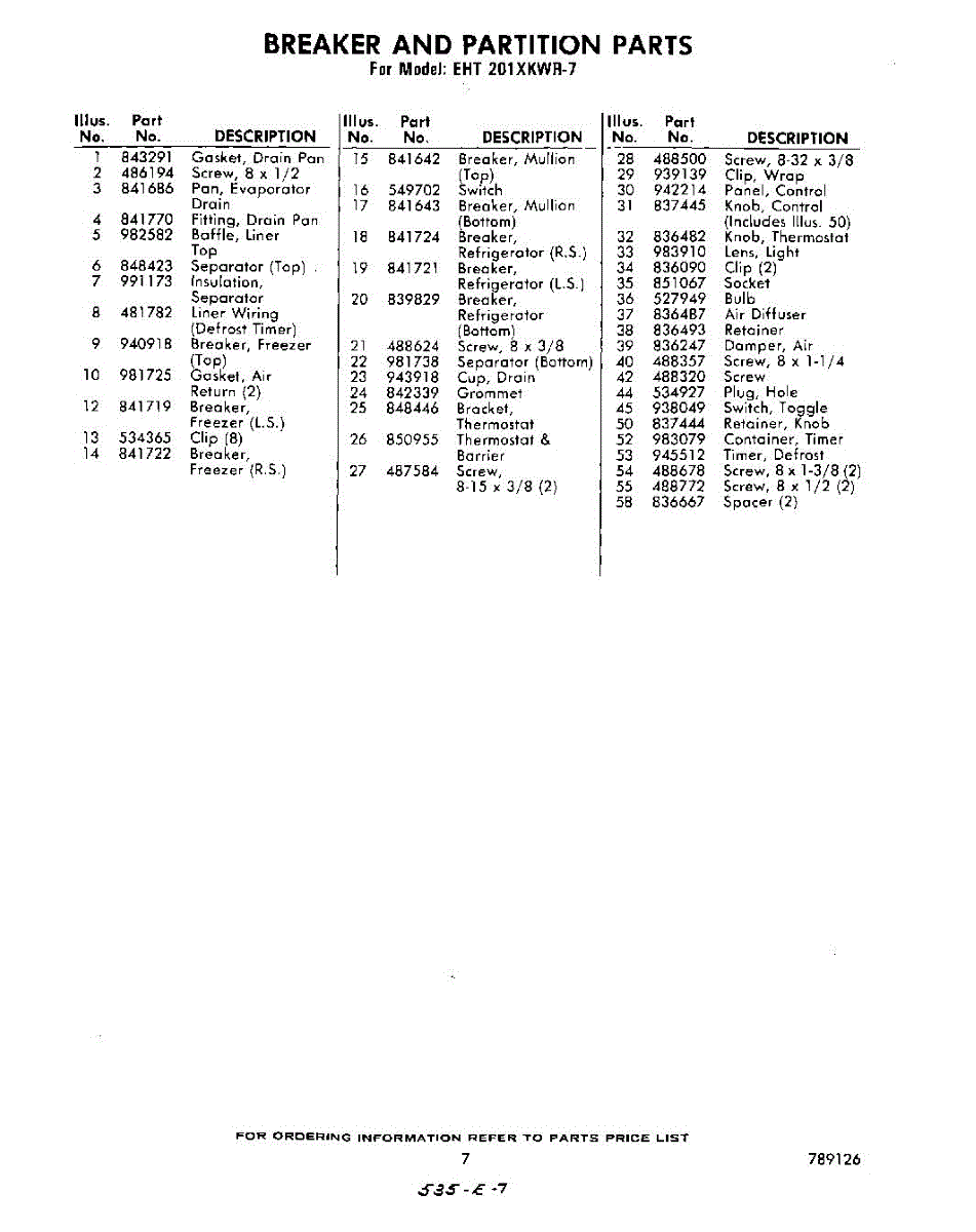 Parts for Whirlpool EHT201XKWR7: 07 - Section Parts