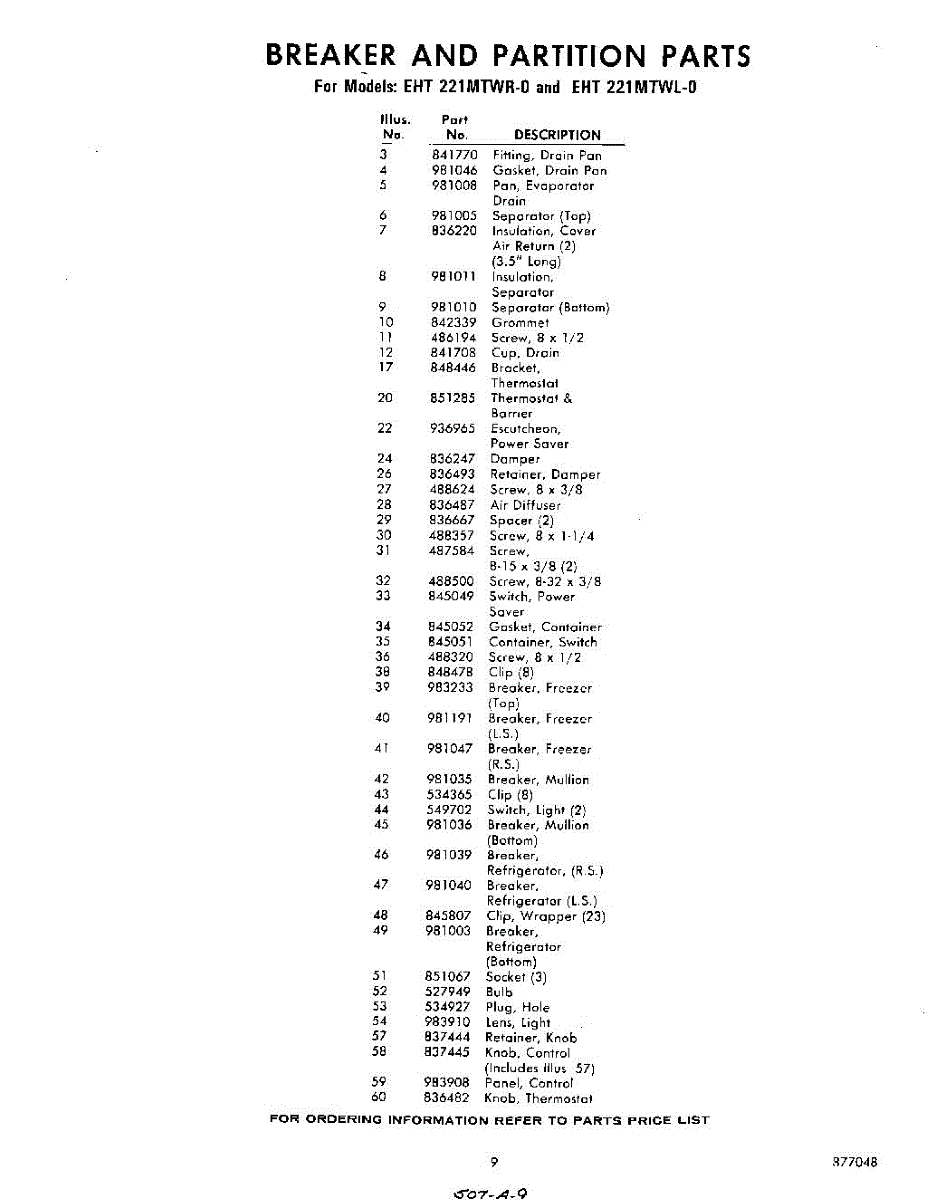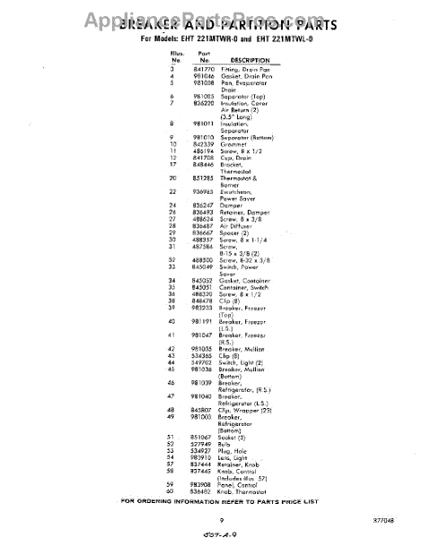 Parts for Whirlpool EHT221MTWR0: 09 - Section Parts