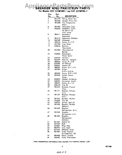 Parts for Whirlpool EHT221MTWR1: 09 - Section Parts