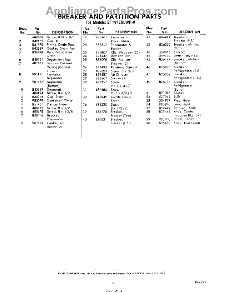 Parts for Whirlpool ET161EKLWR0: 09 - Section Parts
