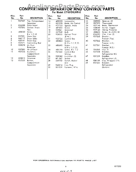 Parts for ET181EKLWR0