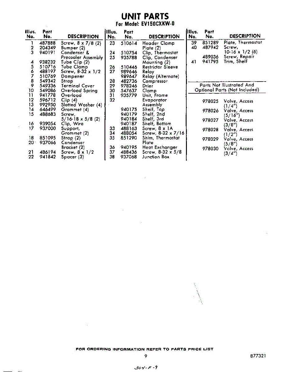 Parts for Whirlpool EV150CXKW0: 09 - Section Parts