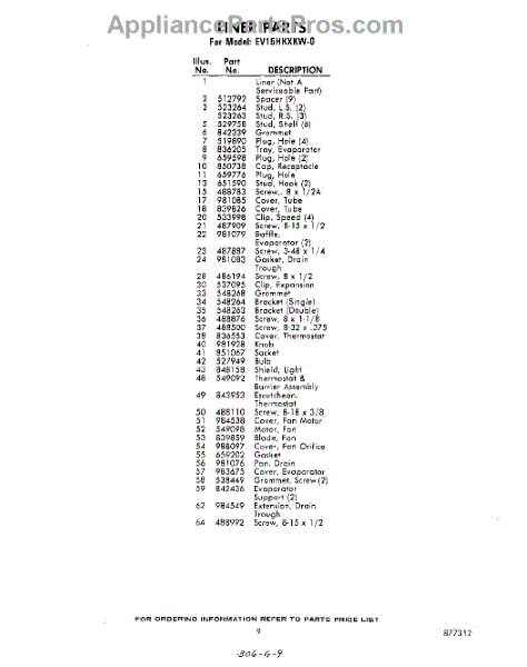 Parts for Whirlpool EV15HKXKW0: 09 - Section Parts