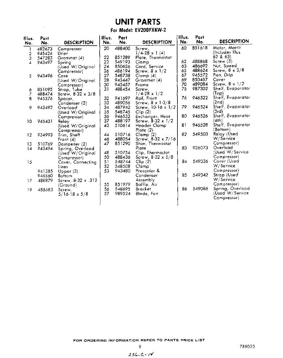 Parts for EV200FXKW2