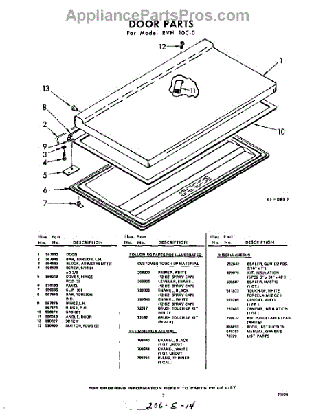 Parts for Whirlpool EVH10C0: 03 - Section Parts