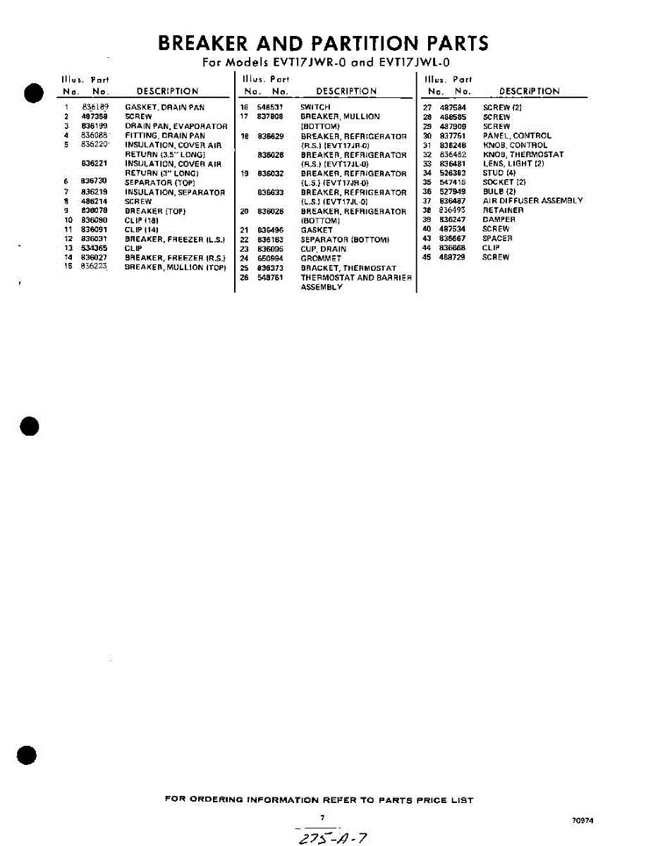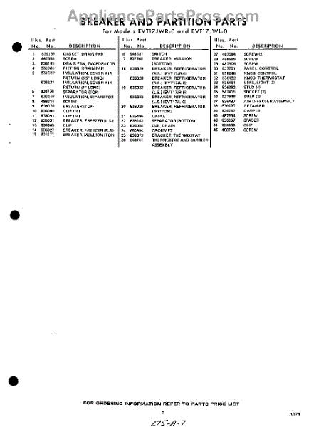 Parts for EVT17JWR0