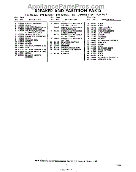 Parts for EVT17JWR1