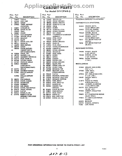 Parts for Whirlpool EVV17PWR0: 03 - Section Parts