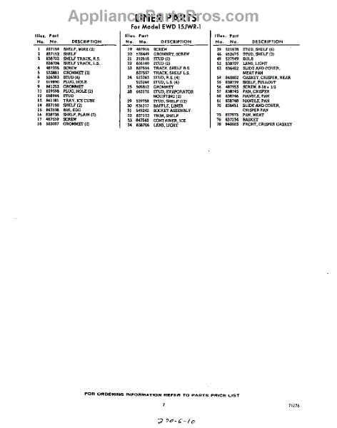 Parts for EWD15JWR1