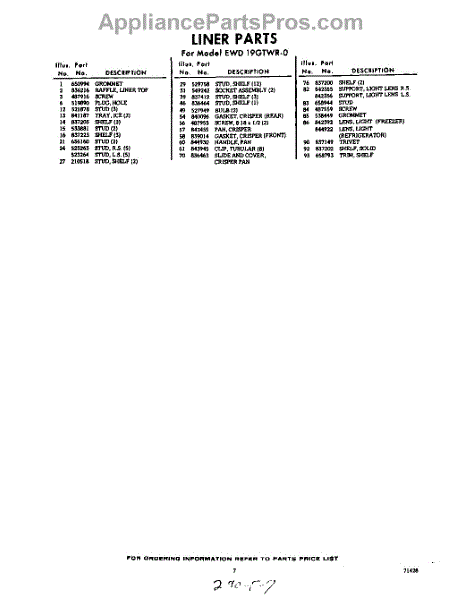 Parts for EWD19GTWR0