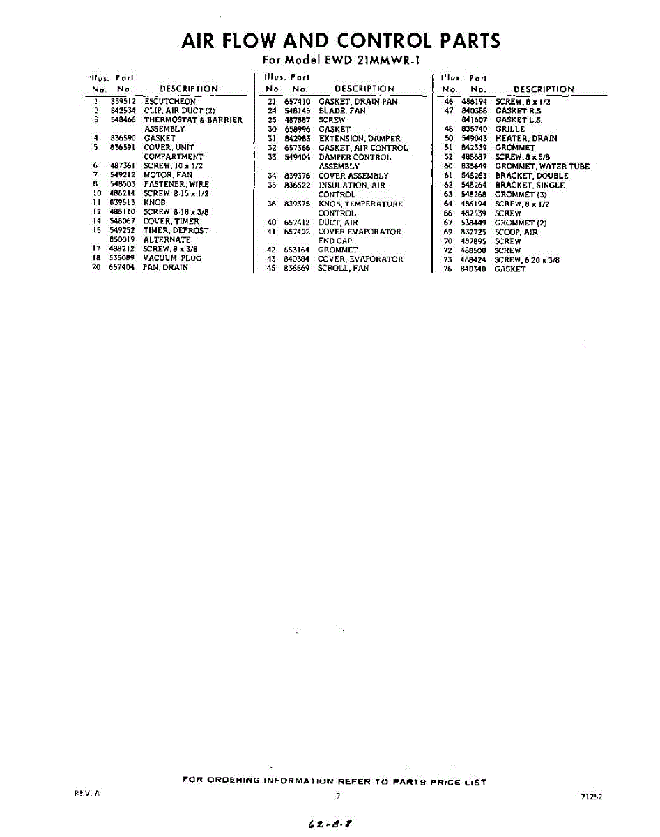 Parts for EWD21MMWR1