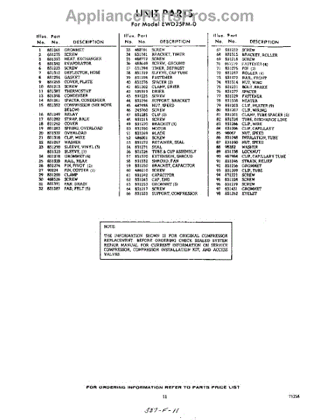 Parts for Whirlpool EWD25PM0: 11 - Section Parts