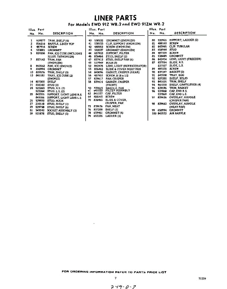 Parts for EWD91ZMWR2