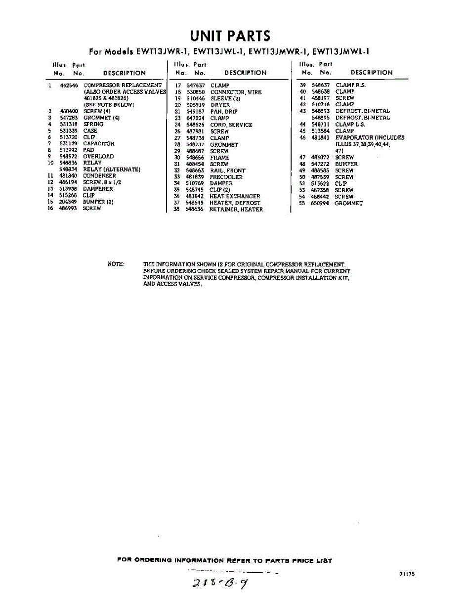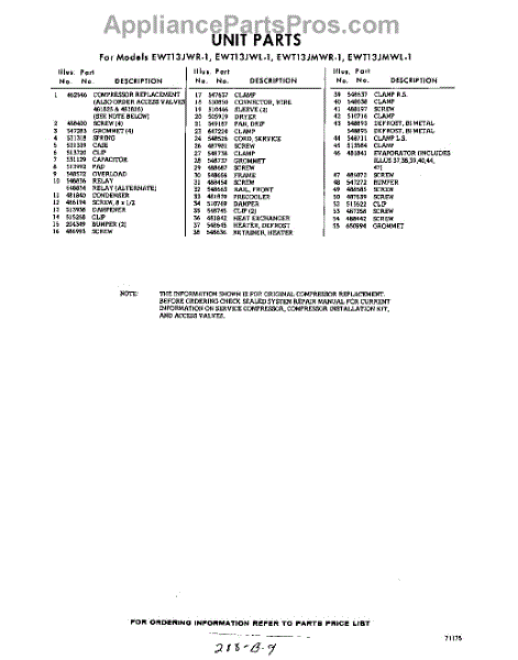 Parts for EWT13JWR1