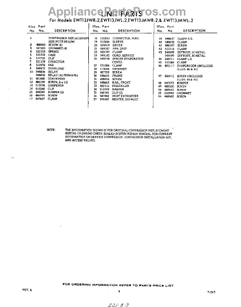 Parts for EWT13JWR2