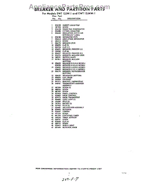 Parts for EWT15JMW1