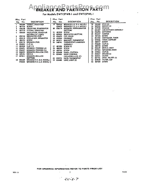 Parts for EWT15PWR1
