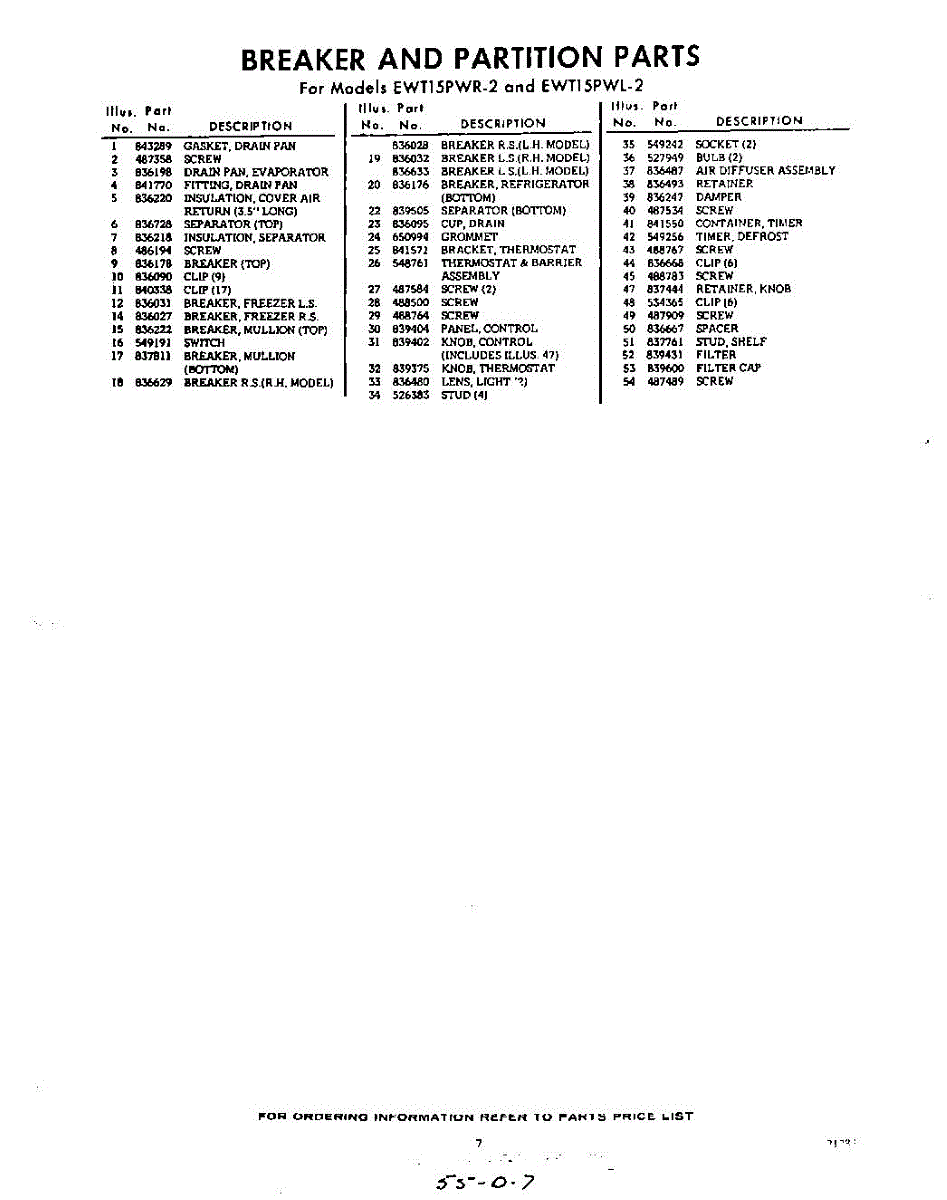 Parts for EWT15PWR2