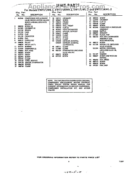 Parts for EWT17JWR2