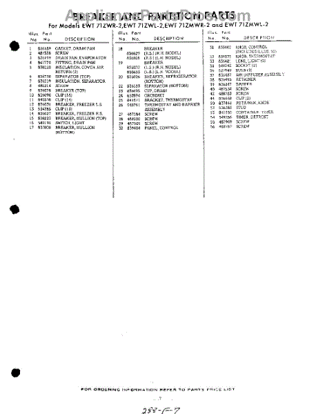 Parts for EWT71ZMWR2