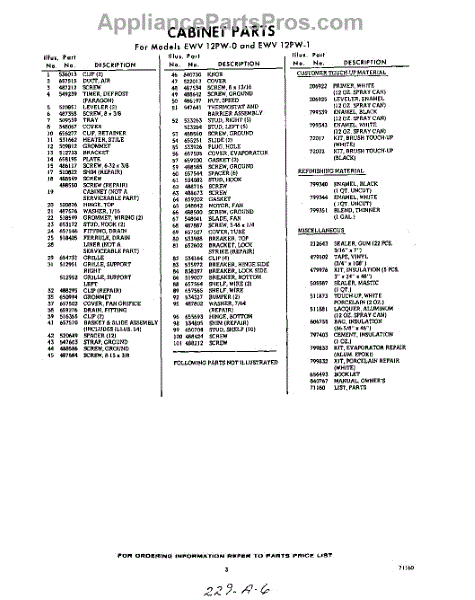 Parts for EWV12PW1