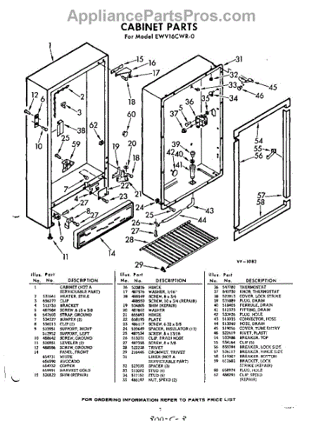 Parts for EWV16CWR0